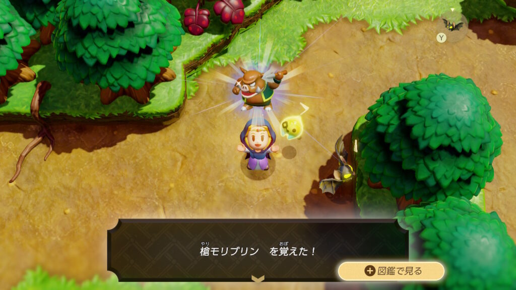 「かりもの」はオブジェクトだけでなく、敵モブも”借りる”事ができる。これまで倒した敵の力を借りながら、なんとか泥臭くダークリンクにダメージを与えていく姿は、これまで見たことのない新鮮なものながら、どことなく「ゼルダ的」と思わせる。そしてダークリンクを倒すと、ゼルダはリンクの剣をも”借りる”ことができるようになるのだ。