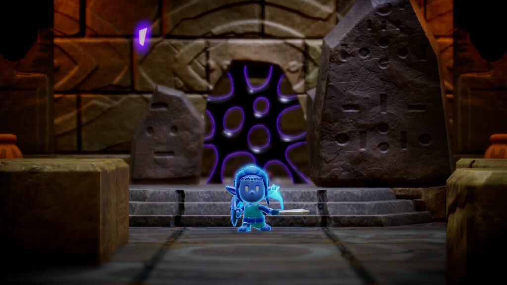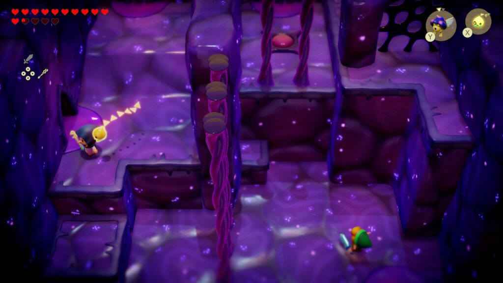 しかし今回においては、減ったアクションを、ゲーム自体をこれまでと違ったパズルアクションにすることによって解決している。NPCとしてリンクがダンジョンに同行するのだ。リンクが戦闘に参加するのはもちろん、謎解きにおいてもキーパーソンとなる。