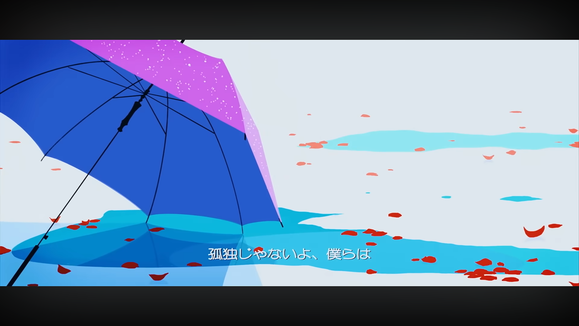 雨が降っています。空には厚い雲が覆い立ち、辺りは真っ暗です。その雨は切り裂くように〈わたしたち〉の身体を濡らし、〈わたしたち〉の孤独をいっそう強めます。〈わたしたち〉は寄り集まり、骨の折れた傘をなんとか立てましたが、いつしかその傘に集う人はいなくなってしまいました。いつまで経っても、雨は強くなるばかりでした。